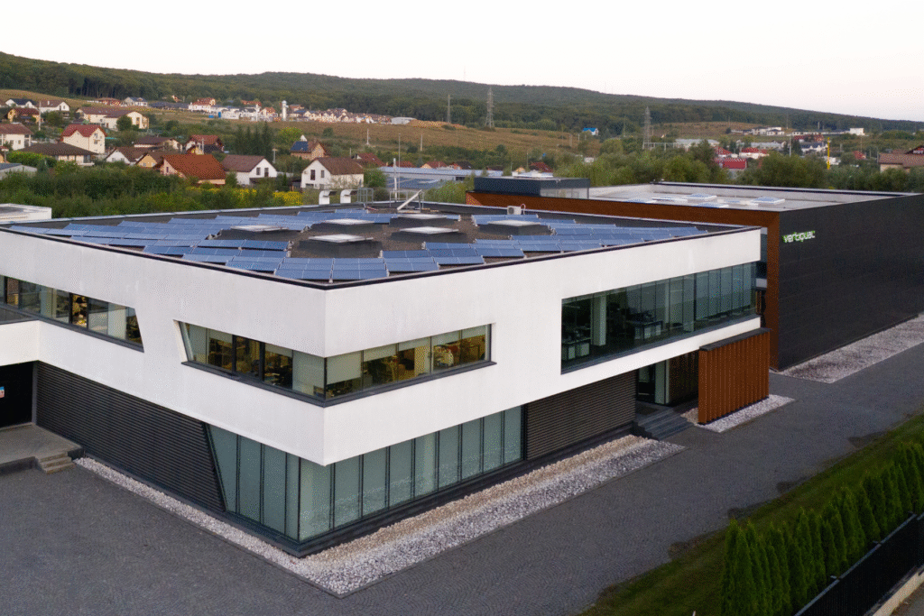 Fast die gesamte in den Produktionshallen verbrauchte Energie stammt aus erneuerbaren Quellen, die über die an unserem Standort in Târgu Mureș installierten Photovoltaikmodule gewonnen werden.